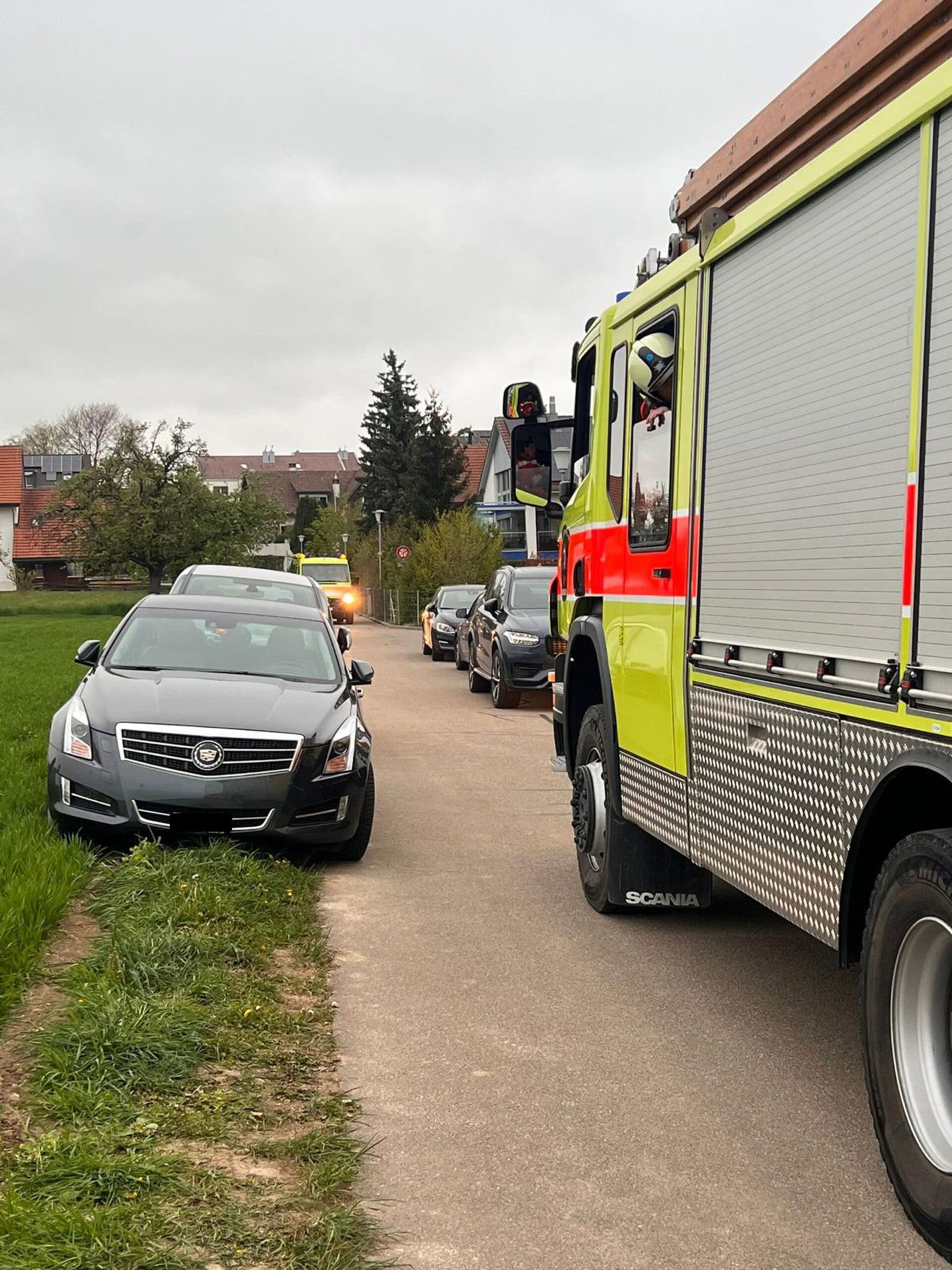 Parkierte Fahrzeuge behinderten bei einer Feuerwehrübung die Durchfahrt eines Einsatzfahrzeug (zvg)